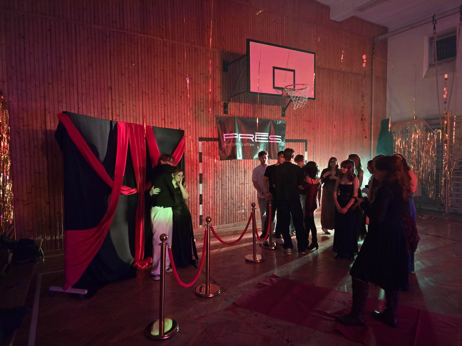 Az idei dekoráció egyedülálló volt. A tornateremig vezető hatalmas vörös szőnyeg, a plafonon kigyózó égősorok, a bordásfalakat borító csillogó arany függönyök és a diszkó gömb elképesztő atmoszférát teremtettek.