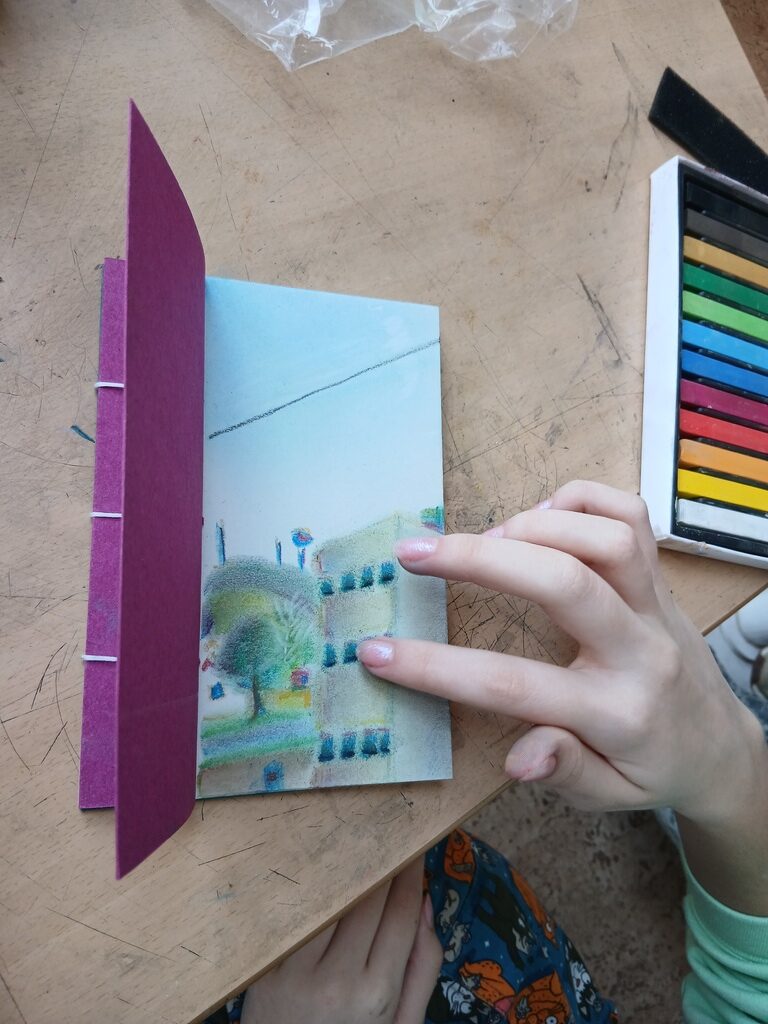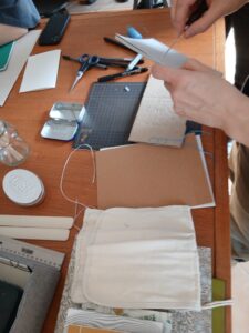 A workshop alkalmával mindenki elkészíthette saját sketchbookját: minden eszköz és anyag a rendelkezésünkre állt a monostor jóvoltából.
